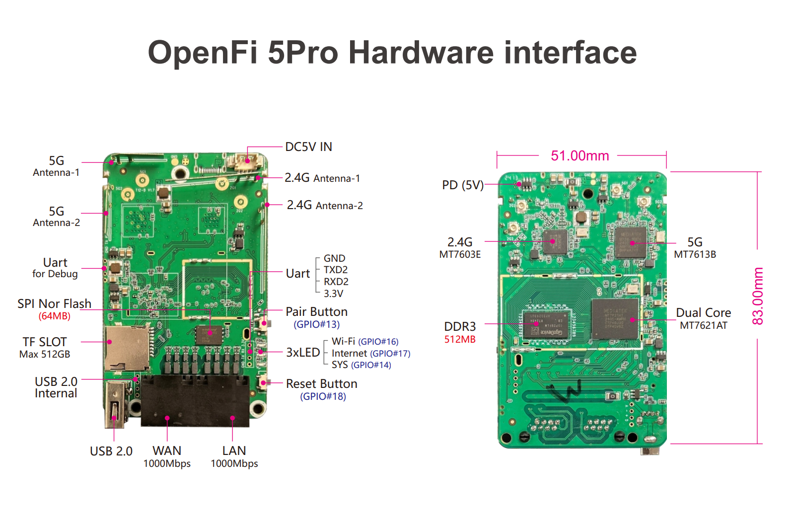 然后选择型号 OpenFi 5Pro 后选择自己想要的软件,编译固件即可